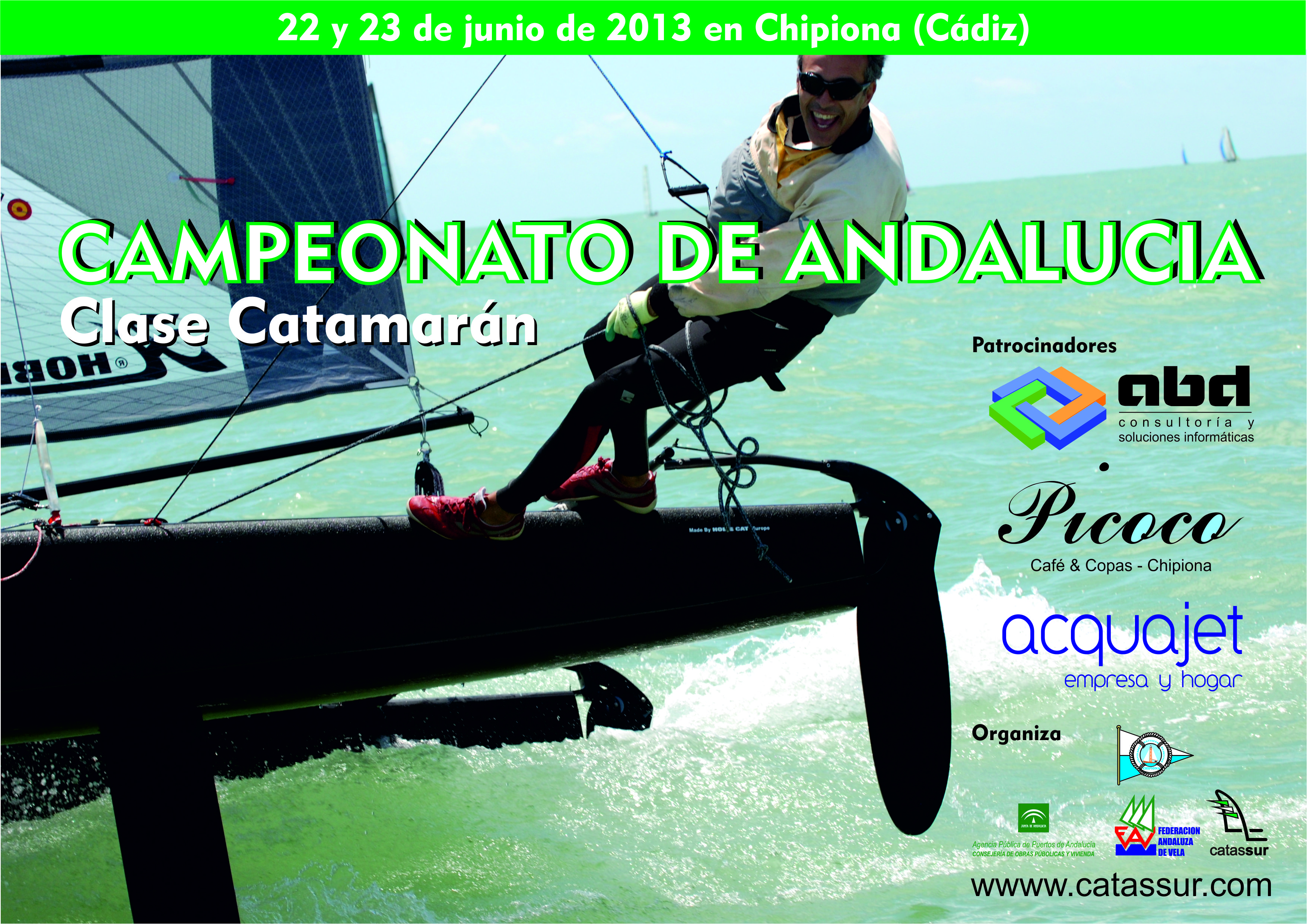 Los próximos 22 y 23 de junio de 2013, bajo la organización del CAND de Chipiona, Catassur, Federación Andaluza de Vela y la Agencia Pública de Puertos de Andalucía (APPA), con el patrocinio de ABD Consultoría y Soluciones Informáticas, Acquajet y el bar de copas Picoco, con la colaboración del Ilmo. Ayto. de Chipiona, se celebrará el campeonato de Andalucía de Catamarán 2013.